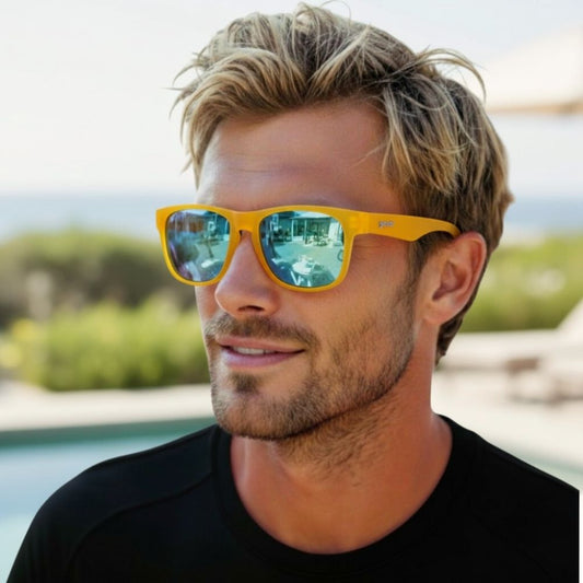 Óculos de Sol Quadrado Amarelo Polarizado Espelhado com Proteção UV400 - Gold Digging with Sasquatch