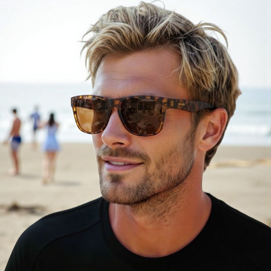 Óculos de Sol Polarizado Quadrado com Armação Tartaruga e Lente em Marrom - Country Club Crasher