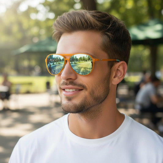 Óculos de Sol Polarizado Aviador Armação Amarela Lente Espelhada - Cheesy Flight Attendant