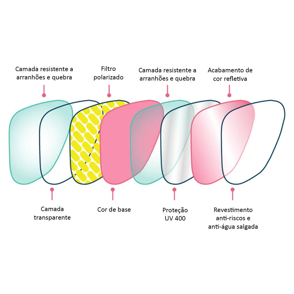 Lentes polarizadas e espelhadas com proteção UV400: bloqueia 100% dos raios UVA e UVB;