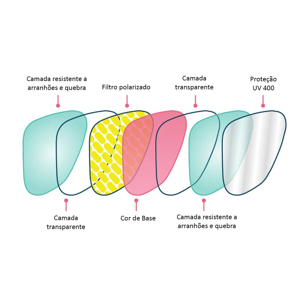 • Tratamento da Lente: Polarizada Proteção UVA UVB