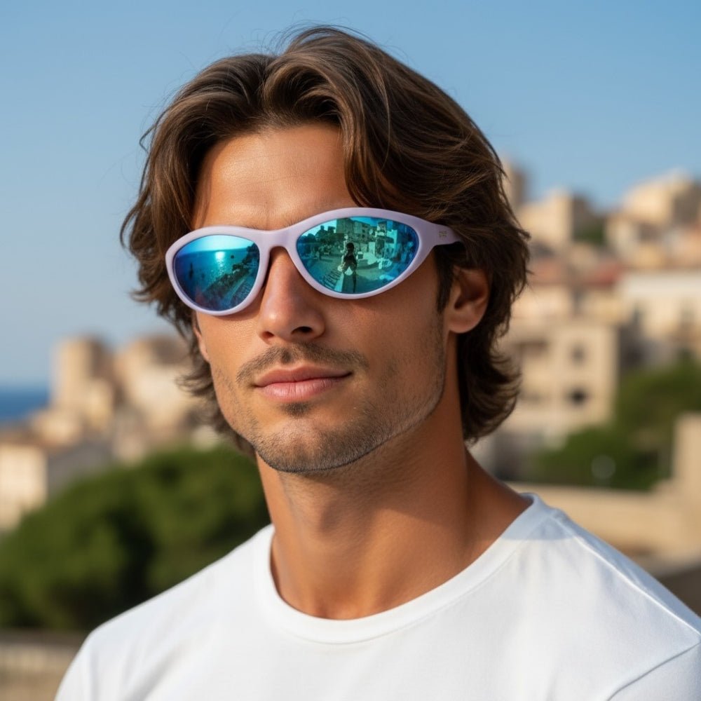 O encaixe é firme e confortável para qualquer formato de rosto graças à armação Bug G. Os óculos redondos azuis com lentes polarizadas espelhadas são ideais para corridas, ciclismo e atividades ao ar livre. Contam com design e materiais que se encaixam no rosto e não pulam nem escorregam.