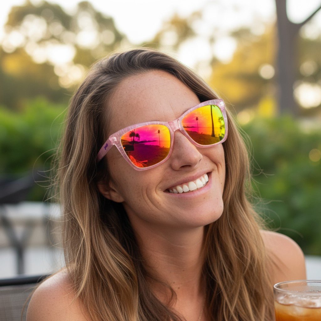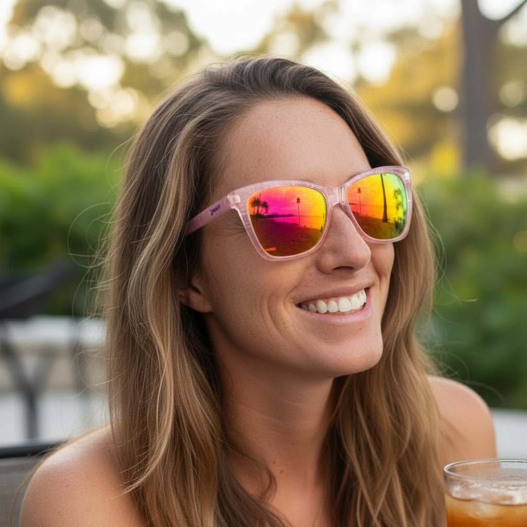 Lentes rosa espelhadas: reduzem reflexos e aumentam a nitidez mesmo em dias ensolarados;