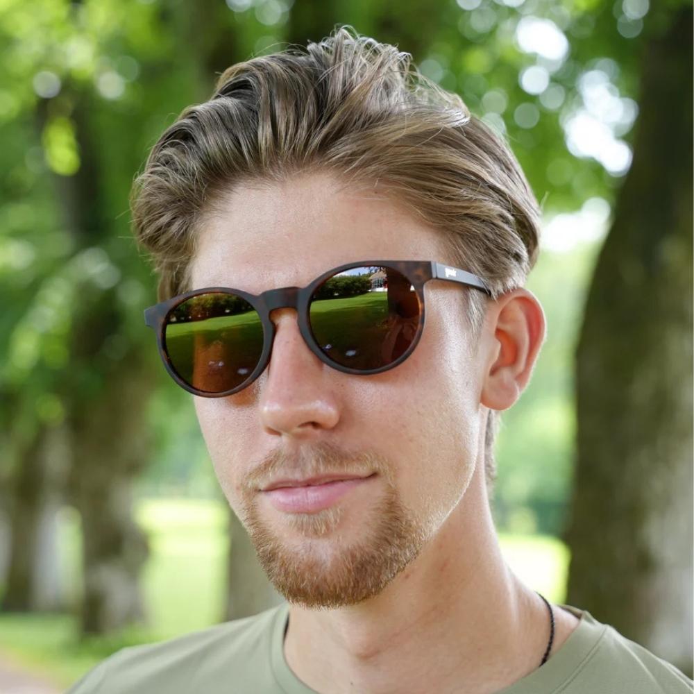 Óculos de sol redondo com lente marrom que une moda e desempenho