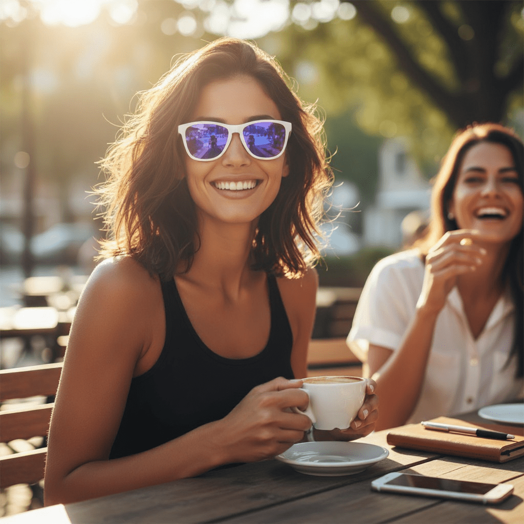Lentes espelhadas roxas: reduzem reflexos, aumentam a nitidez e deixam o visual moderno;